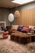 - Strakke lijnen maken plaats voor ronde, volumineuze vormen. Dit noemen we Fat Furniture: oversized banken en fauteuils waarin u letterlijk kunt wegzakken.